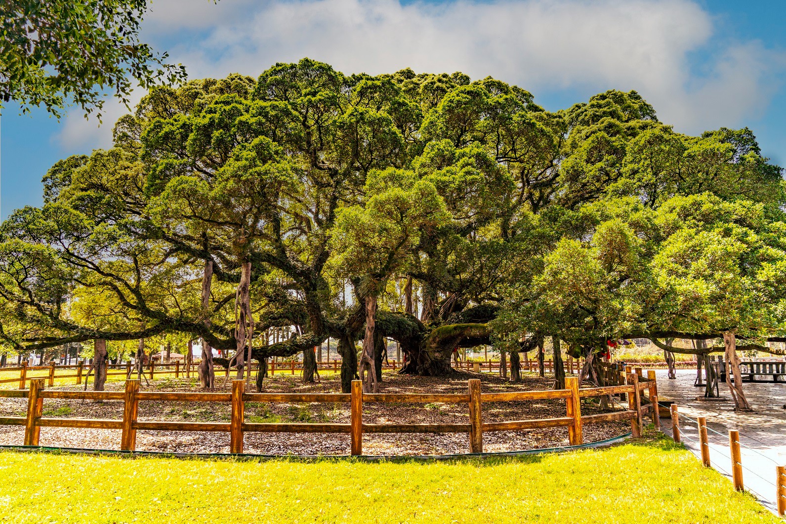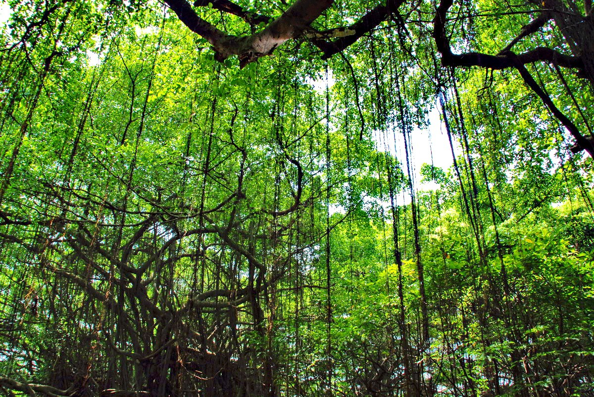 如今,这棵古榕树高15米,树冠覆盖面积达2公顷,经过岁月的沉淀形成了壮美奇景。榕树枝干上长着美髯般的气生根,着地后木质化,抽枝发叶又长成新枝干,新干上又长成新气生根,循环往复生生不息,一棵树长成了一片榕树,造就了独木成林的奇观。