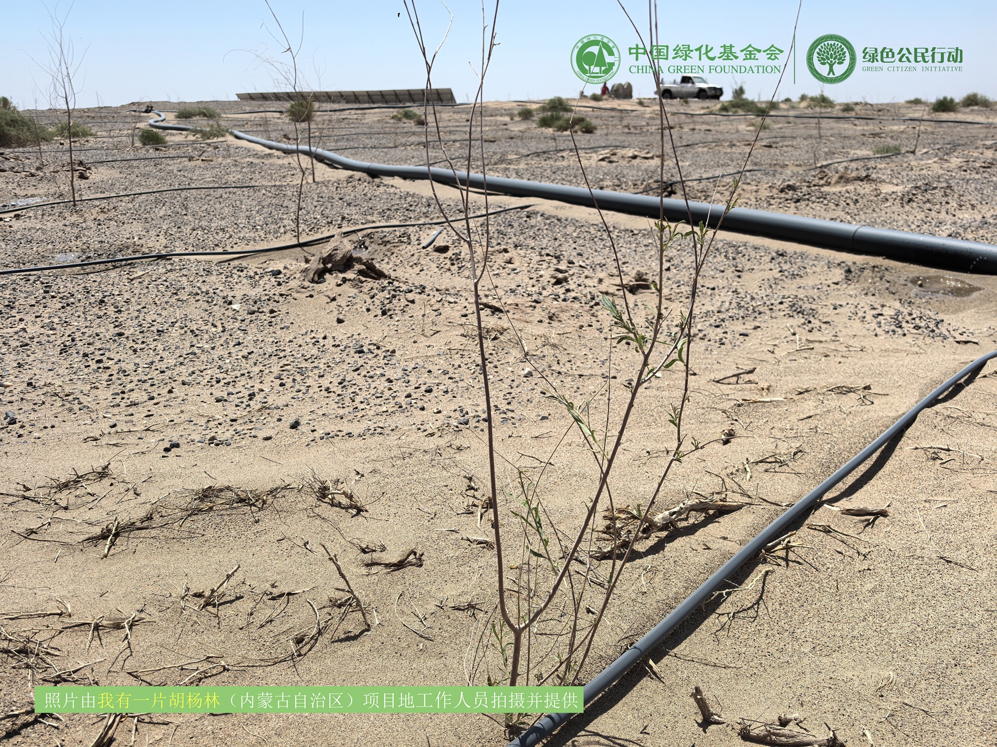 进入5月,内蒙古项目区仿佛置身于炙热熔炉,高温与风沙如影随形,白天气温一路飙升至39℃。裹挟着热浪的风沙,像无形的“抽水机”,让小胡杨水分蒸发速度远超预期,胡杨发芽率也因此受到影响。为应对这一困境,管护员避开高温时段,调整滴灌时长,在保证水分精准输送的同时,最大程度减少蒸发损耗。
